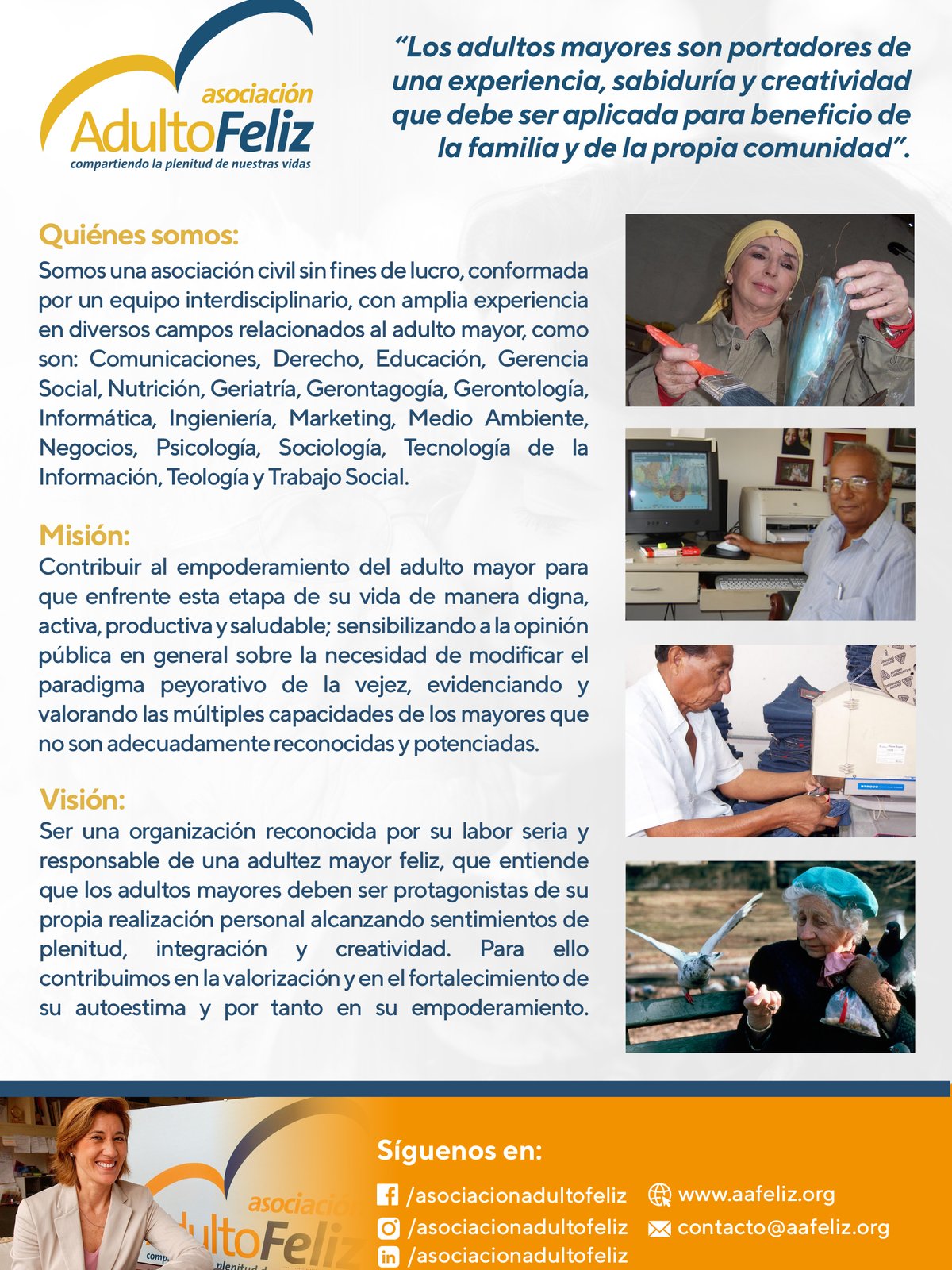 - Professionals, students, government authorities, service providers for older adults from both public and private sectors, NGO leaders and staff, social entrepreneurs, business leaders, HR and innovation directors, as well as faith community leaders, committed to or interested in aging and older adult issues.